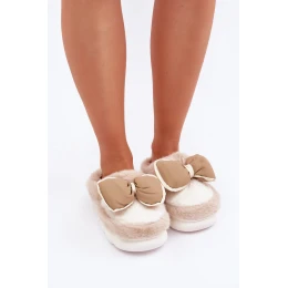 Futrzane Kapcie Z Kokardką Beżowe Grilis