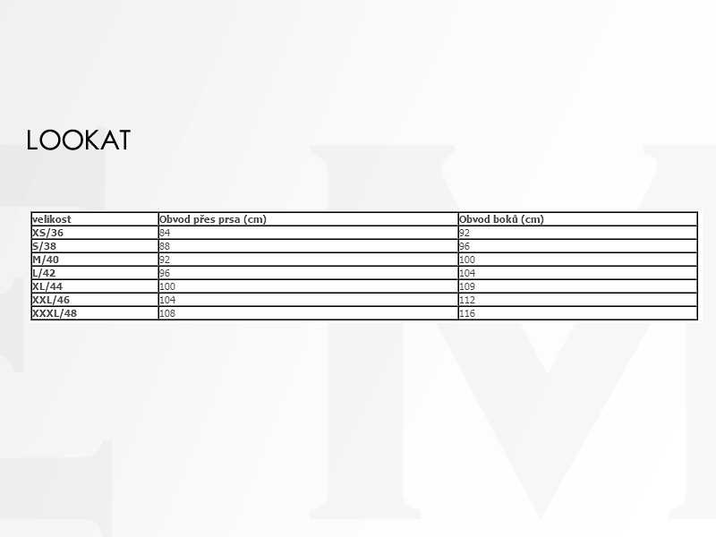 Tabuľka veľkostí (v cm) | Dĺžka blúzky | Šírka (obvod poprsia) | Obvod pása (pás) |