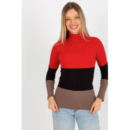 Dámsky sveter s dlhým rukávom a rolákom z rebrovaného materiálu v troch farbách.