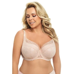 Podprsenka Gorsenia, model K483 Peony, má drôtiky, ktoré podporujú a tvarujú prsia. Zvislé kostice na bokoch. Výrobok má nastaviteľné ramienka bez možnosti odopnutia. Zapínanie na háčiky a očká. Miesto zapínania: na chrbte. 2 rady zvislých háčikov. 3 vrstvy vodorovných háčikov. Výrobok je vyrobený z 90 % z polyamidu, 7 % z elastanu, 3 % z polyesteru. Vlastnosti výrobku: čipkovaná dámska podprsenka s plným košíčkom na leto.