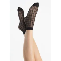 Ponožky z jemných tmavých blokov lemovaných striebornou lesklou niťou