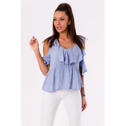 Je to blúzka na ramenách s ozdobnými volánikmi.