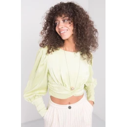Limetková blúzka s dlhými rukávmi a zaujímavým výstrihom na chrbte. Perfektná večerná ponuka.
