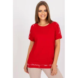 Blúzka s krátkymi rukávmi a okrúhlym výstrihom. Ozdobné nápisy na spodnej časti a na rukávoch. Ideálna voľba na každodenné nosenie.