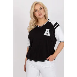 Blúzka na každodenné nosenie s 3/4 rukávmi a srdiečkovým výstrihom. Blúzka je zakončená rebrovanými manžetami a aplikáciou na prednej strane.