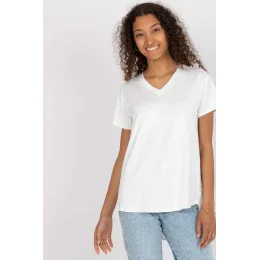 Blúzka s krátkymi rukávmi, rovného strihu, so syrovým výstrihom a čipkovaným chrbtom.