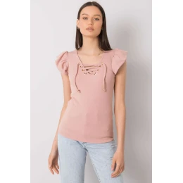 Blúzka s krátkymi rukávmi z rebrovanej tkaniny. Syrový výstrih s ozdobným lemovaním. .