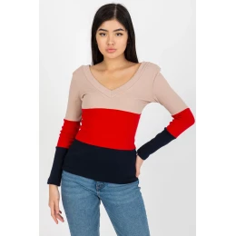 Blúzka s dlhými rukávmi a srdiečkovým výstrihom. Blúzka z rebrovanej tkaniny v troch farbách.