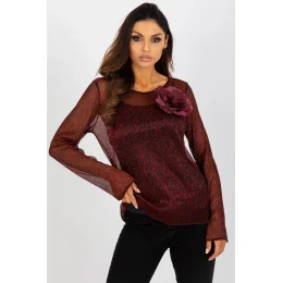 Dvojdielna blúzka s dlhými rukávmi a okrúhlym výstrihom. Ozdobná brošňa v tvare kvety na prednej strane. Spodná časť v podobe trička bez ramienok.