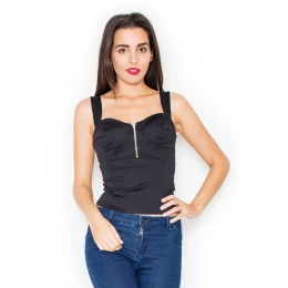 Top a la korzet na širokých pásikov, zakrivený misku s krátkym predným zipsom. Veľmi sexy problém, dobre prezentované budú obaja tesne priliehajúce sukne a džínsy. Tento model je k dispozícii v troch farebných prevedeniach.
