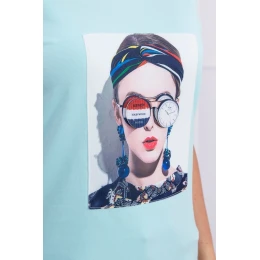 Blúzka s dámskou grafikou v mätovom odtieni