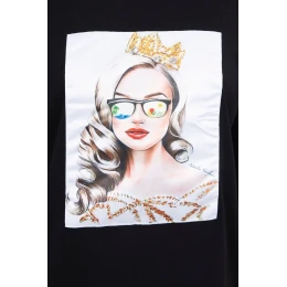 Blúzka s grafikou dievčatá v 3D okuliaroch čierna
