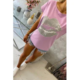 Predstavujeme vám módnu blúzku. Blúzka s potlačou pier. Blúzka s krátkym rukávom. Super grafika na tričku. Blúzka ideálna na leto s šortkami. Blúzka je vyrobená z vysoko kvalitného materiálu. Veľkosť je univerzálna a vyhovuje dámam, ktoré nosia veľkosť S, M alebo L.