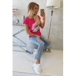 Blúzka s potlačou pier fuchsiová