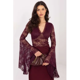Elegantní krajková blůzka s stylovým a ženským charakterem, ideální na každodenní vycházky, společenské události a večírky. Model přitahuje pozornost různorodou strukturou materiálu, která dodává celku jedinečné, decentní kouzlo. Blůzka je vyrobena z kombinace polyamidu a elastanu, co zajišťuje elasticitu, přizpůsobení se postavě a pohodlí nošení. Krátká délka ve spojení s dlouhým, od lokte rozšířeným rukávem vytváří efektní, moderní střih. Výstřih v podobě "V" jemně zdůrazňuje linii krku a poprsí, přidávající eleganci a lehkost. Model nemá zapínání a obléká se přes hlavu. Kromě toho blůzka má podšívku na přední straně, v oblasti hrudníku, což zajišťuje pohodlí a estetické provedení. Jedná se o ideální nabídku pro ženy, které chtějí spojit eleganci s efektním, módním designem.
