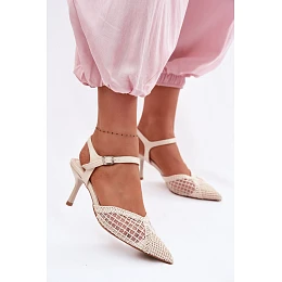 Idira Světle béžové sandály s síťkou na podpatku pletené