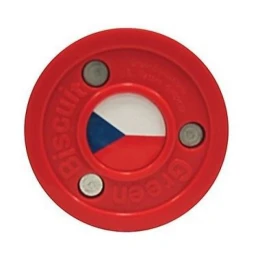 Zelený tréningový puk s vlajkou Českej republiky uprostred.