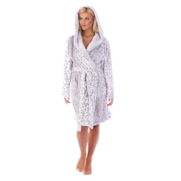 Dámsky župan irbis 4856 s kapucňou vzorovaný krátky - Vestis
