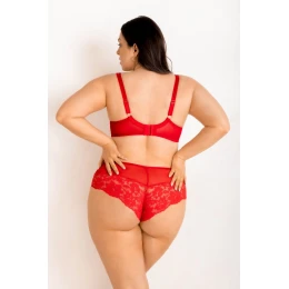 Podprsenka Jasmin Plunge 19150 RED značky Mediolano je dokonalou kombináciou elegancie a pohodlia určenou pre stredne veľké, veľké a veľmi veľké prsia. Je vyrobená z béžovej sieťoviny pokrytej hustou červenou vyšívanou čipkou a zaujme svojím ženským dizajnom a funkčnosťou. Mäkký plunge dizajn so širokou kosticou nadvihuje a zhromažďuje prsia, čím ich prirodzene a účinne tvaruje. Košíčky sú plnšie, ideálne pre vyzývavé postavy. Absencia bočných veľkých kostíc zvyšuje pohodlie a široké ramienka s penovou podložkou znižujú tlak na ramená počas celodenného nosenia. Ide o jedinečný dizajn pre ženy, ktoré ocenia oporu, pohodlie a jemný pôvab čipky.