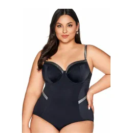 Jednodielne plavky v klasickom a elegantnom strihu. Zdobené lesklými ramienkami, kovové zapínanie na chrbte. Plnohodnotné košíčky, podšité, penou vystužené košíčky stabilne podopierajú poprsie.