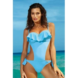 Veľmi sexy jednodielne plavky monokiny s brazílskym chrbtom. Hladké, s malou zlatou mašľou s drahokamami vo výstrihu a koketným volánikom v najmódnejšom kubánskom štýle. Ženský, jemný, zmyselný... Privítajte jeden z najhorúcejších modelov sezóny! Košíčky s podväzkami, vystužené, s trvale umiestnenou neodnímateľnou push-up výplňou - skvele modelujú prsia, zdvíhajú ich a opticky zväčšujú. Ramienka bez ramienok sú plne odnímateľné, skvelé pre rovnomerné opálenie dekoltu a ramien. Obvod sa zapína sponou. Spodná časť plaviek sa na bokoch pohodlne zaväzuje. Zadná časť je mierne vykrojená, aby odhaľovala zadok (Brazílsky typ). Ak chcete, môžete si vziať pareo a pohodlne sa prechádzať po pláži. Model je vyrobený z talianskej elastickej tkaniny. Najnovšia kolekcia Leto 2018.