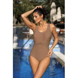 Jednodielne plavky sú k dispozícii až v 16 farbách. Verzia bez push-up, s krásnou brošňou v zlatej farbe.