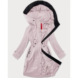 Jednoduchá dámska bunda v púdrovo ružovej farbe s kapucňou LHD (LHD-24590)