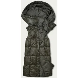Jednoduchá dámska vesta v khaki farbe s kapucňou (YP-22072-6)