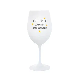 JEŠTĚ CHVILKU A UVIDÍM ZLATÉ PRASÁTKO - bílá sklenice na víno 350 ml