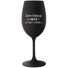 JSEM KRÁSNÝ A SEXY! (A TAKY VTIPNÝ...) - černá sklenice na víno 350 ml