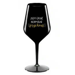 JSEM ÚPLNĚ NORMÁLNÍ PSYCHOUŠ - černá nerozbitná sklenice na víno 470 ml