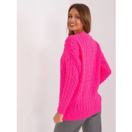 Fluo ružový dámsky károvaný sveter bez gombíkov.