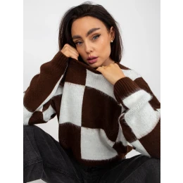 Hnedo-biely voľný klasický sveter vo štvorcoch .