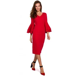 K002 Plášťové šaty s volánikovými rukávmi - červené