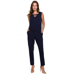 K009 Jednodielny overal s výstrihom do V - tmavomodrý