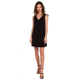 K128 Jednoduché šaty áčkového strihu s mašľou - čierne