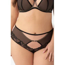 Predná časť: spodná časť z elastickej čipky, vrchná časť zo sieťoviny s ozdobným prešívaním a regulátorom, všetko podšité elastickým tylom, nohy zakončené úzkou gumou