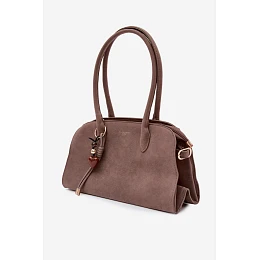Kabelka s přívěskem a sponami eko semiš tmavě béžová Violette