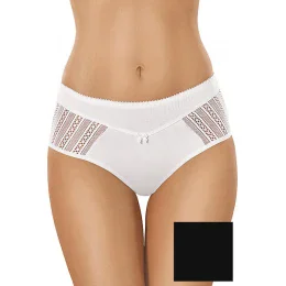 Štýlové plné nohavičky v čiernej farbe, ktoré dodávajú ženským tvarom ušľachtilý rámec. Prednú stranu zdobí mašlička a malé vsadky z jemnej čipky. Najvyššia kvalita bavlny a spracovania. K dispozícii je čierna farba.