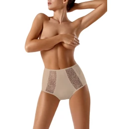 Bavlnené nohavičky s vysokým pásom a krajkovými akcentmi na prednej strane na oboch stranách. Elegantné, ženské a veľmi pohodlné.
