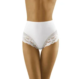 Bavlnené nohavičky vyššieho strihu, zdobené čipkou na stehnách a zaujímavým priehľadným pruhovaným tylom. Tieto dva vzory v kombinácii s príjemnou, hladkou tkaninou vytvárajú originálne usporiadanie, vďaka ktorému boky vyzerajú elegantne a tvarovane. Strih jemne tvaruje bruško.