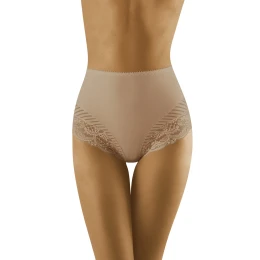 Bavlnené nohavičky vyššieho strihu, zdobené čipkou na stehnách a zaujímavým priehľadným pruhovaným tylom. Tieto dva vzory v kombinácii s príjemnou, hladkou tkaninou vytvárajú originálne usporiadanie, vďaka ktorému boky vyzerajú elegantne a tvarovane. Strih jemne tvaruje bruško.
