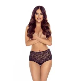 Vyššie nohavičky sa vpredu aj vzadu plne zaväzujú na šnúrky. Mäkké a pružné, rezané laserom. Čipka pokrytá pôsobivým kvetinovým vzorom vyzerá nádherne a štýlovo. V rozkroku pohodlná bavlnená vložka. Výrobok je zabalený v elegantnej značkovej krabici.