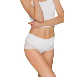 Klasické dámske nohavičky s kvetinovou čipkou. Sú vyrobené z bavlny av páse majú elegantný elastický opasok. Čipkové doplnky sa nachádzajú ako na spodnej, tak na prednej strane nohavičiek, vďaka čomu vyzerajú veľmi elegantne. Jemné ploché švy nohavičiek sú pri každodennom nosení nepoznateľné. Nohavičky sú vyrobené z bavlny, ktorá je nealergická a vysoko absorbuje vlhkosť.