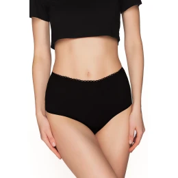 Dámske nohavičky s vysokým pásom a efektnou čipkou na spodnej časti. Elegantná kvetinová čipka našitá na zadnej strane nohavičiek pripomína atmosféru paláca. Krásne, elegantné a nadčasové, to je určite prvok, ktorý odlišuje tieto nohavičky z ponuky spodnej bielizne Babell. Predná časť nohavičiek je hladká. Nohavičky sú vyrobené z vysoko kvalitnej bavlny v našej miestnej šijacej dielni s dôrazom na detail.