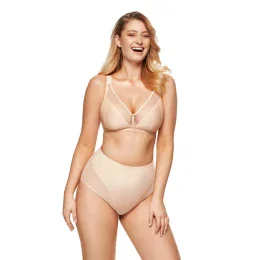 Klasické nohavičky s vysokým pásom jemne tvarujú pás a bruško. Vyrobené z elastického tylu a úpletu. Bavlnený klin pre pohodlie a ľahké nosenie. Zadná časť spodného dielu je vyrobená z úpletu.