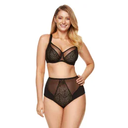 Dámske nohavičky s vysokým pásom vyrobené z kombinácie elastického tylu a orientálnej vzorovanej plisovanej látky. Bavlnený klin pre pohodlie a ľahké nosenie. K dispozícii vo veľkostiach 36-52.