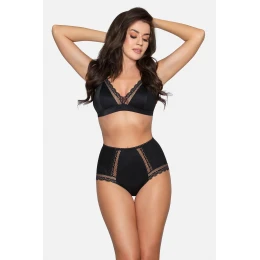 Krásne čierne nohavičky s výraznou čipkou. Dokonale sa prispôsobia telu. Materiál je príjemný na dotyk, mierne lesklý a pružný. Nohavičky sú vyrobené v Poľsku s dôrazom na detail.