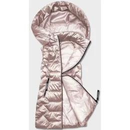 Perlovo ružová dámska vesta s kapucňou (B8107-51)