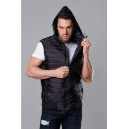 Čierna pánska vesta s kapucňou (8MY88-1)